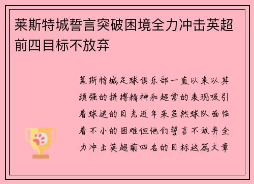 曼城的欧冠失利虽令人失望,但也为球队提供了反思和调整的契机。从阵容调整到战术革新,再到球队管理和心理调整,每个方面的改进都至关重要。曼城若能够在这些领域取得突破,未来依旧有望在欧冠赛场上实现突破,重返巅峰。